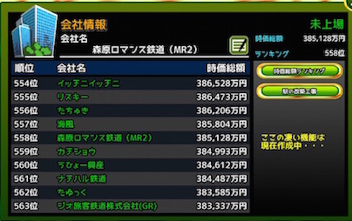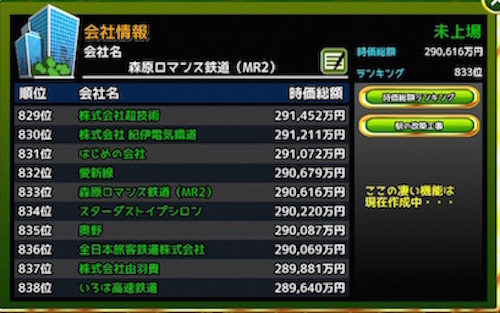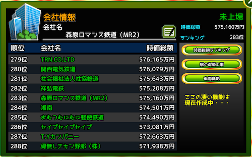会社のランキングも283位となりました。時価総額は57億5160万円。
