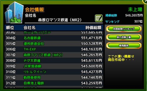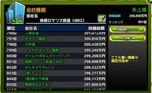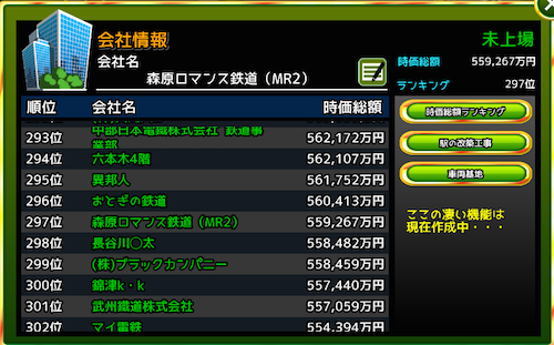 会社のランキングでは297位とベスト300を確保しました。時価総額55億9267万円です。
