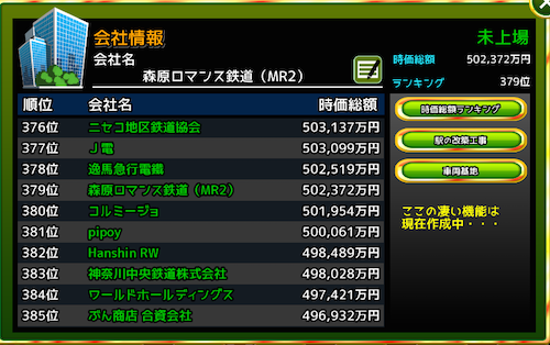 翌日には379位で、時価総額も50億2372万円と50億を超えました。