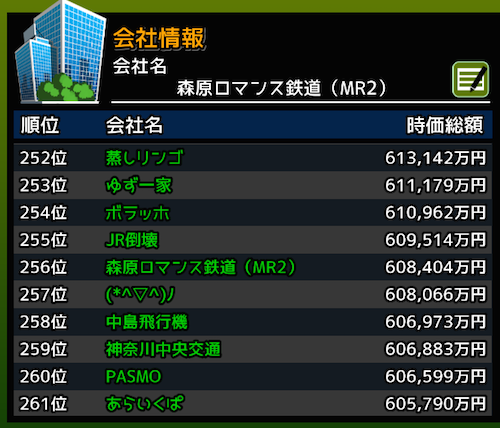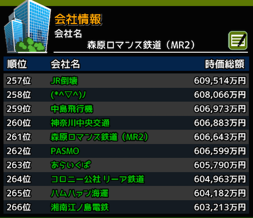 ランキングでも261位となり、時価総額は60億6643万円となりました。
