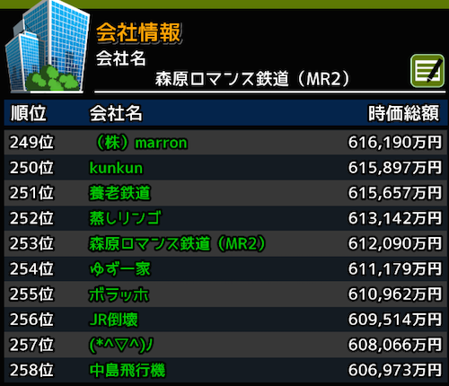 ランキングも253位となり時価総額は61億2090万円となりました。