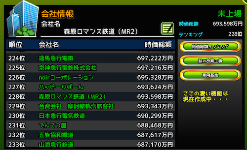 ランキングも228位となりました。時価総額は69億3598万円です。