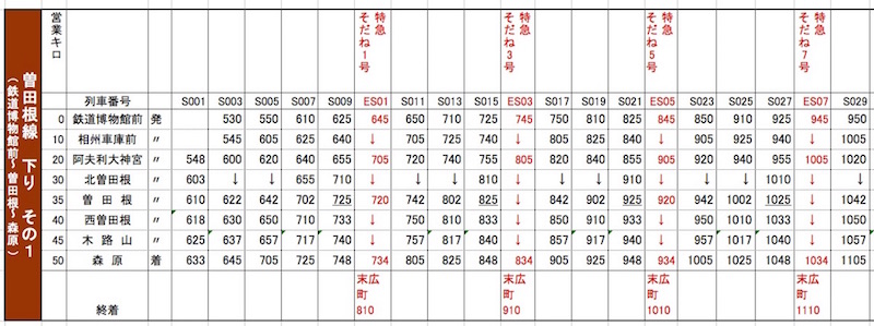 特急そだねは、鉄道博物館前駅・阿夫利大神宮駅・森原駅にはすべて停車し、曽田根駅には一部が停車します。