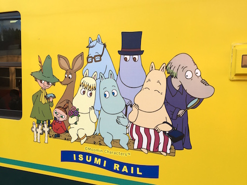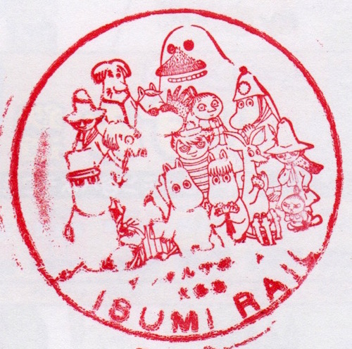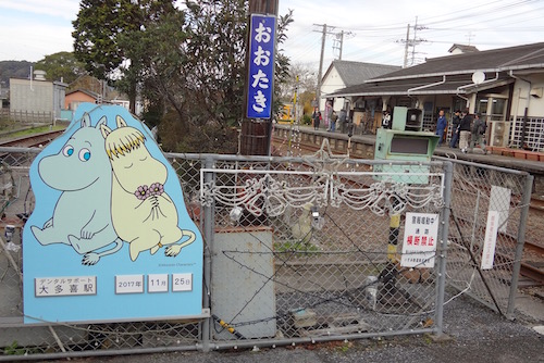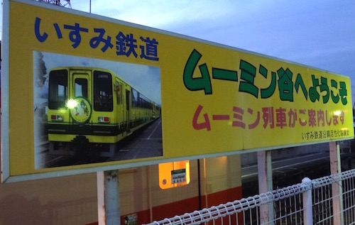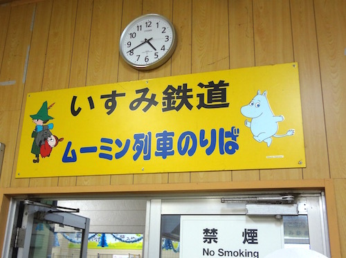 いすみ鉄道には「ムーミン列車のりば」と書いてある。