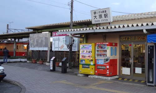 ここ大原駅からJRの外房線の特急新宿わかしおで終点の新宿まで行く。