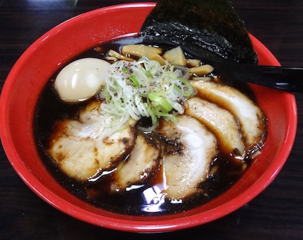 私は富山ブラックラーメン790+チャーシュートッピング200。写真のように真っ黒なスープだけれど、なぜか懐かしい感じがする。