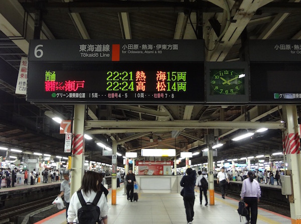 東京駅を22時ちょうどに出発した寝台特急サンライズ瀬戸の横浜発は22時24分となる。