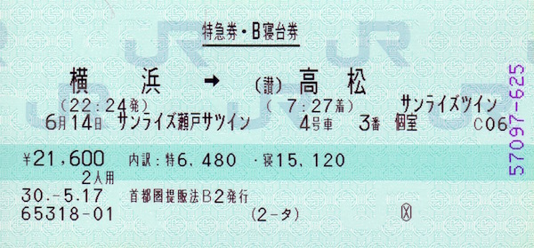 となる。差額は1,950円だ。2食分以上が浮く計算だ。最も寝台特急サンライズ瀬戸に熱海から乗車すれば、往復乗車券のほかに乗り継ぎ割引も使えるためにさらに安くなる。