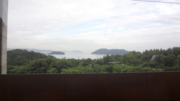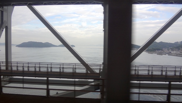 夜が明けてしばらくすると列車は岡山へ着く。ここでサンライズ出雲を切り離す。児島を過ぎると列車は瀬戸大橋を渡る。空には雲が多いが、島々が点々と見える景色を楽しむことができた。