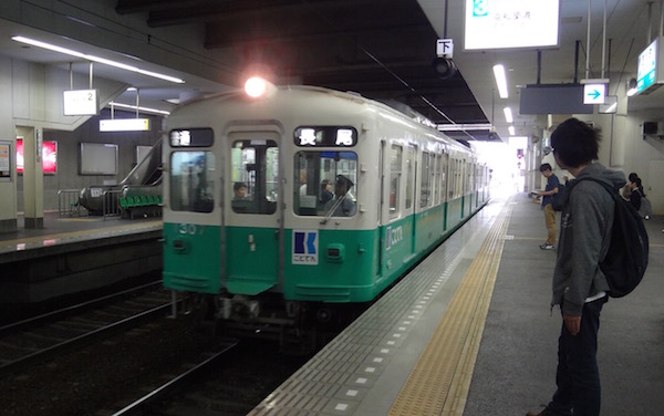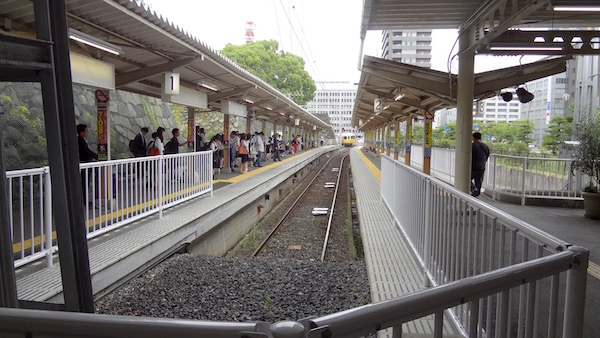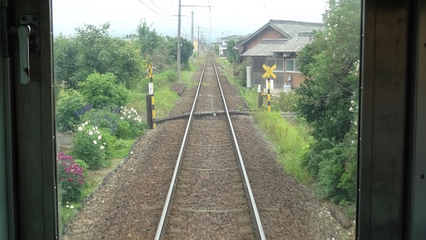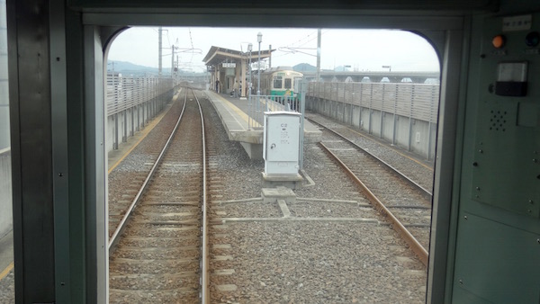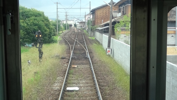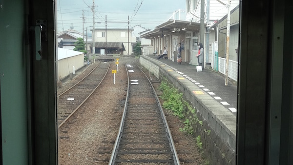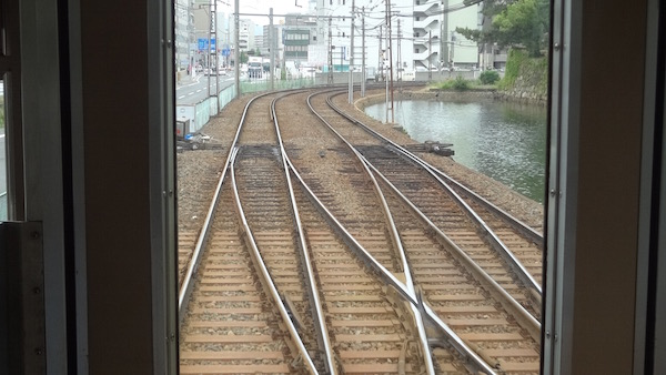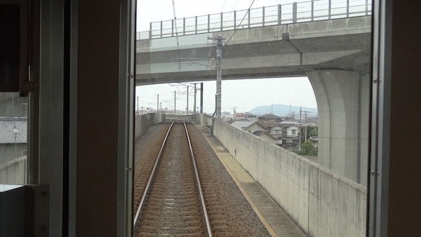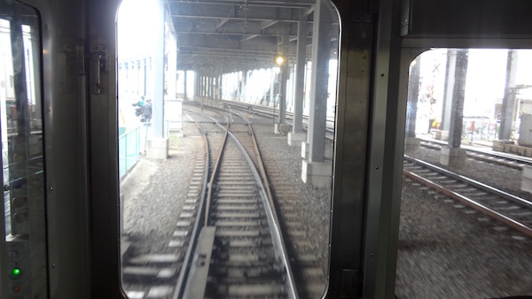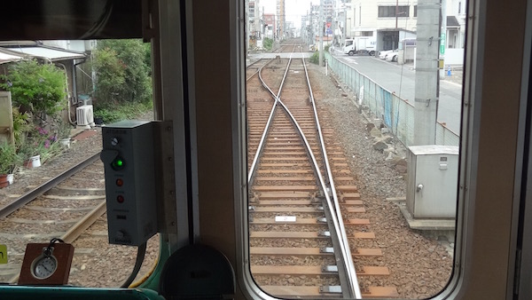 列車の先頭からの眺め。これから瓦町駅を出発する。