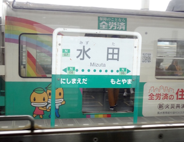 高架で列車行き違いのできる駅の水田駅に到着した。すでに上り列車が反対側のホームで待っていた。水田と次の西前田の間で高松自動車道とクロスする。