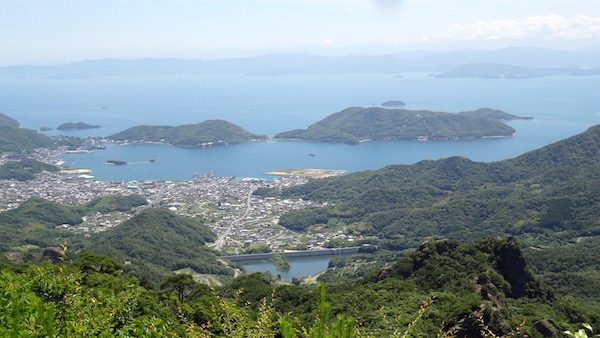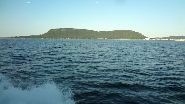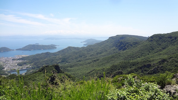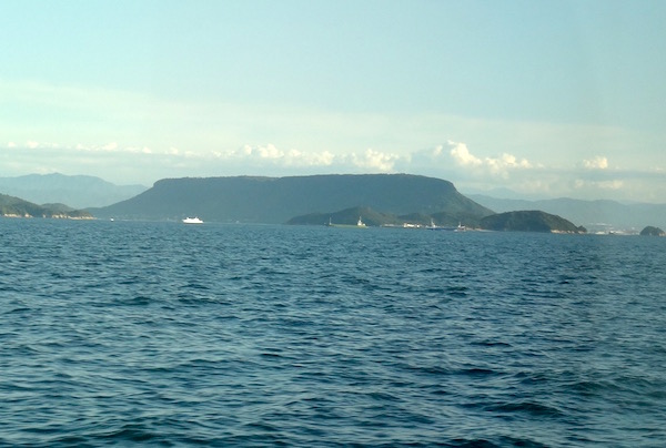 稜線がまっすぐな山が目立つ。帰宅後に調べるとどうも屋島らしい。