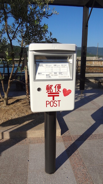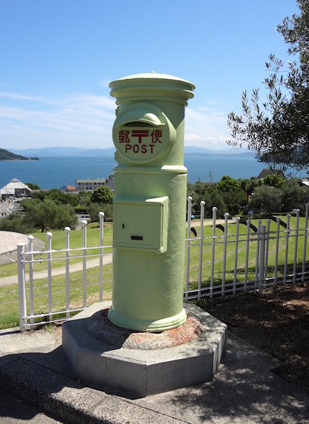 オリーブ色のポストがあった。幸せのオリーブ色のポストというらしい。普通のポストとして機能している。