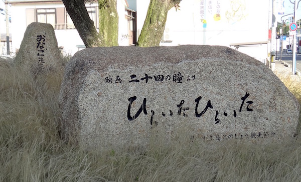 港の前のロータリーの中に「映画二十四の瞳より ひらいたひらいた」という石碑があった。