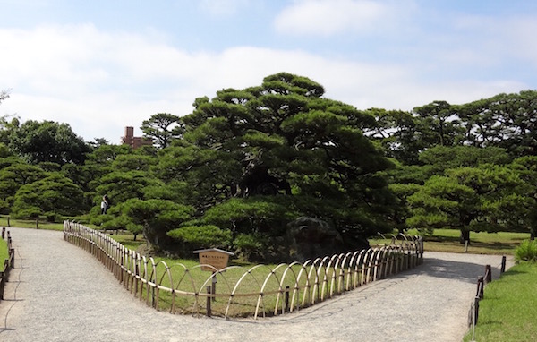 こちらは鶴亀松(百石松)。亀の形の石組の上に、鶴が羽を広げたように見えることから名づけられた。