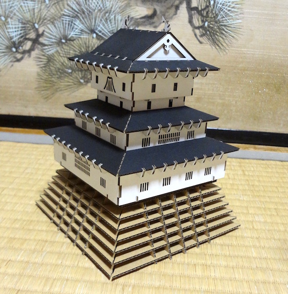 記念品の一つの天守閣の模型。屋根が3層なので、建物も一見3層に見えるが、実は4層である。最下層は天守台から少しだけ大きくはみ出しているのも特徴の一つである。