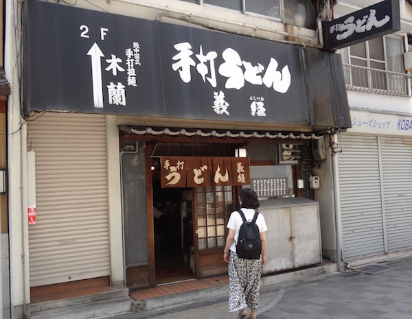 さて、商店街をぶらぶら歩いて、昼食は路地裏のここ。手打ちうどんの義経へ。高松の旅の最後はやっぱりさぬきうどんだ。そういえば旅の最初の食事もさぬきうどんだった。