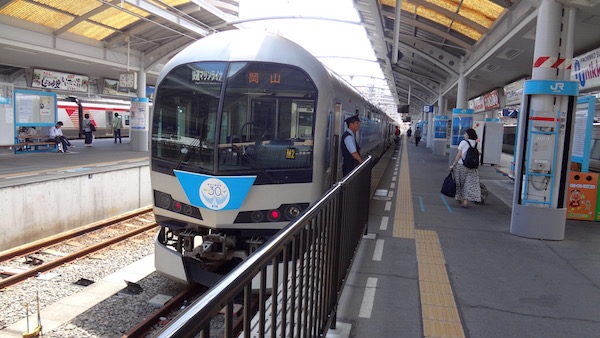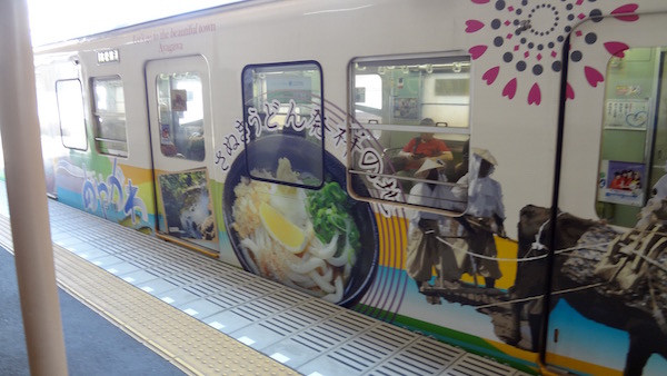 「さぬきうどん発祥の地」とラッピングされた電車がやってきた。