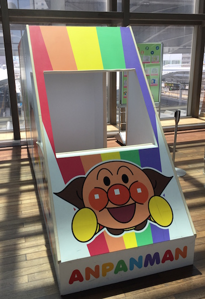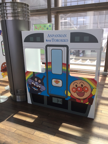 高松駅へ向かう。待合室の2階にはアンパンマンの穴あきパネルがあった。さすがアンパンマン列車を走らせているJR四国だけのことはある。