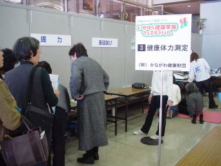 家族健康度チェックラリーと称して10ヶ所の“健康チェック”のうち4ヶ所以上チェックすると記念品がもらえるという企画があった。その1番は骨密度測定であり結構人気があった。骨粗しょう症などが心配なのかな?