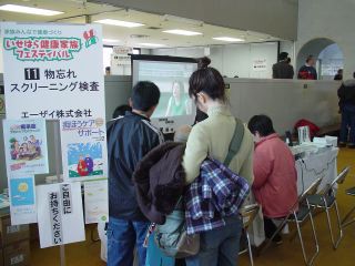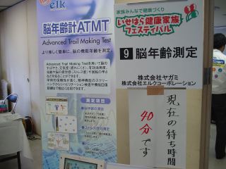 1番人気があったのは何と脳年齢測定だった。混雑時には最大40分待ち! 反射神経のテストのようでしたが、脳年齢や痴呆を気にする人が多いのでしょう。実際の年齢よりも脳年齢が高くでてしまった人には大きなショックとなることでしょうね。