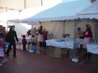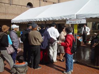 文化会館脇の広場でも、伊勢原市食生活改善推進団体と福祉を育てる会の協力を得て、とん汁・焼そば・カレーライスなどが150〜200円で販売されていた。とん汁に人気があったようだ。確かに旨かった!