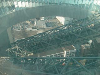 展望台からシースルーエスカレーターを見下ろす(左右とも)
