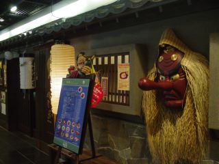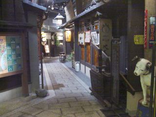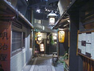 空中庭園を十分に堪能してから、ビルの地下に向かう。ここには滝見小路がある。昭和初期の懐かしい街並みを模したと思われるレトロな食堂街である。お稲荷さん・交番・郵便局・タバコ屋などもあるし、凝った外装・内装も見ているだけで楽しい。