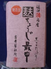 新町通りの八幡堀寄りに、麩の吉井があります。丁字麩のお店で、試食ができるがなかなか商売熱心であり、ついついちょうじ最中(黒ゴマたっぷりの最中)を買ってしまいました。