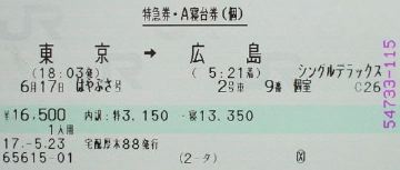 さて仕事を終え、寝台特急はやぶさで広島へ向かう。東京駅18時3分発で広島駅着が翌5時21分である。寝台特急は廃止もしくは併結が進んでおり、この列車も寝台特急はやぶさ(熊本行き)&富士(大分行き)として門司まで併結して運転されている。