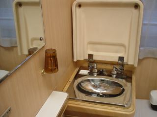 部屋の窓側には洗面台があり、フタを開けて使用する。