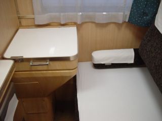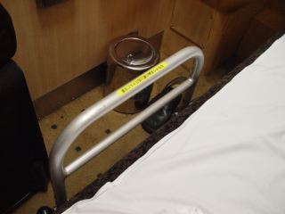 床にはごみ箱があるが揺れても問題ないように磁石で固定されている。ベッドにした時には転落防止柵があり多少寝相が悪い人でも一安心である。