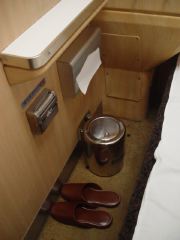 以前は入線前に、浴衣や毛布と一緒に部屋へおいていたのだが、頻繁に盗まれるという。始発駅では発車時刻よりも10分程度早めの入線になるし、最初は鍵がかかっていないため、自由に出入りができるので、このようなことが起こるのだと言う。一度、A寝台すべてのタオルが盗難されたことがあるようだ。鉄道とくに寝台列車ファンの仕業だとしたら、非常に悲しいことである。マナーやエチケットではなく、これは立派な犯罪である。