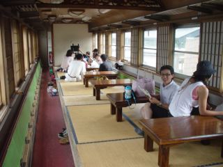 暑いこの日は、屋外展示場の奥にあるこのお座敷列車は冷房が効いていて靴を脱いで寛げるので何組かの親子連れが休んでいた。でも多くの人はこの車両だけが冷房が効いていることを気がつかないようだった。