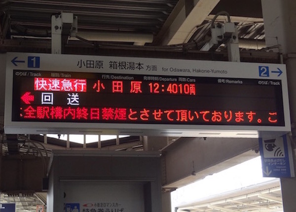 小田原駅に戻り新幹線の待合室へ行くと、そこは満員御礼で座ることができない。待っているのはほとんど外国人! 異様に外国人率が高い。