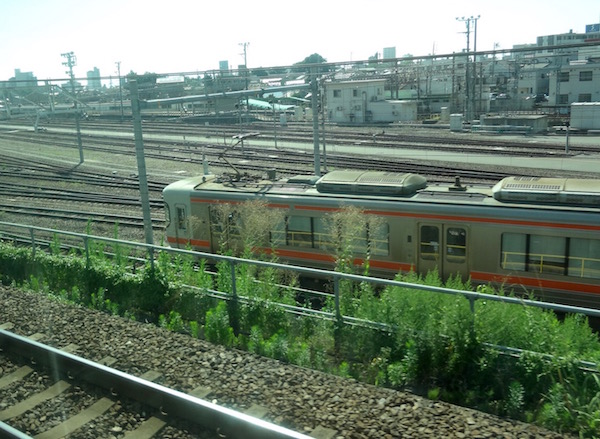途中ではこのように広々とした区間を走る。右側には関西本線と近鉄が。左側はJR東海名古屋工場につながる線路だろう。