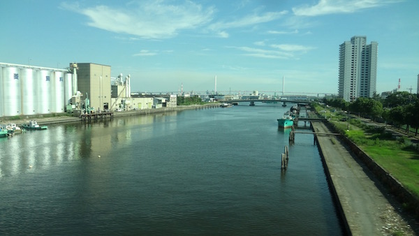 関西本線と近鉄に別れを告げると線路は南に向かう。野跡駅をすぎると臨海地帯だ。