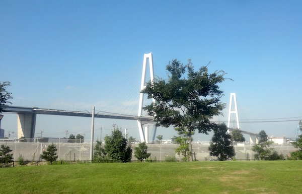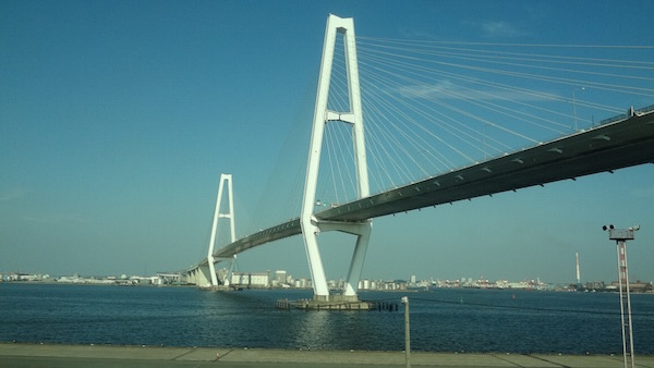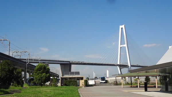 帰りのあおなみ線は外国人が非常に多い。欧米人も多いがそれ以上にアジア系が多い。とても国際的である。金城ふ頭駅を出ると、伊勢湾岸自動車道が近づいてきた。