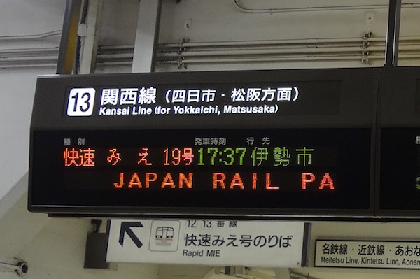 名古屋からは関西本線で桑名へ向かう。利用する列車は快速みえ19号だ。4両編成で1号車のみ指定席で2〜4号車は自由席である。乗客は多く立ち客もいる。