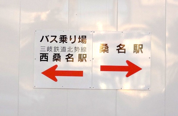 駅前のホテルにチェックインしてから再び行動を起こす。桑名駅前は改良工事中でかなりごちゃごちゃしていた。工事中のフェンスにはこのような案内があった。西桑名駅方面へ向かう。