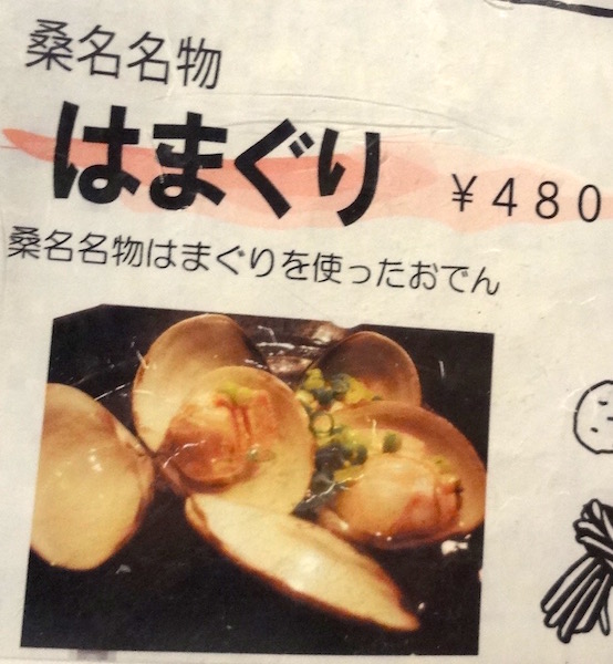 フェンスに大きく桑名名物のはまぐりの写真もあった。「その手は桑名の焼きはまぐり」にも出てくる。