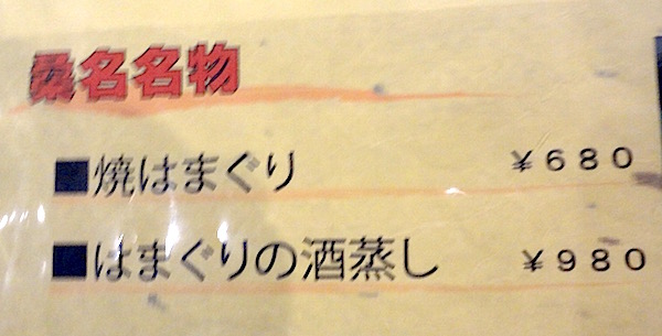 はまぐりの写真を見てしまったのではまぐりも食べたくなった。ホテルの隣のビルにある居酒屋でんかくに入る。