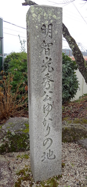 明智駅に戻ってきました。次の列車まで少し時間があります。駅舎の近くには「明智光秀公ゆかりの地」という石碑がありました。2020年の大河ドラマ「麒麟がくる」の主人公は明智光秀ですから、脚光を浴びるかもしれませんね。