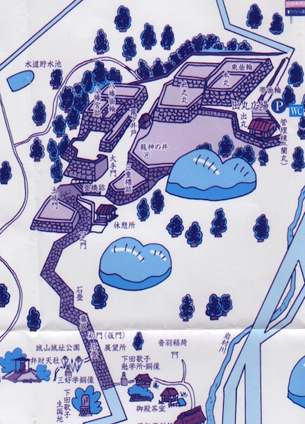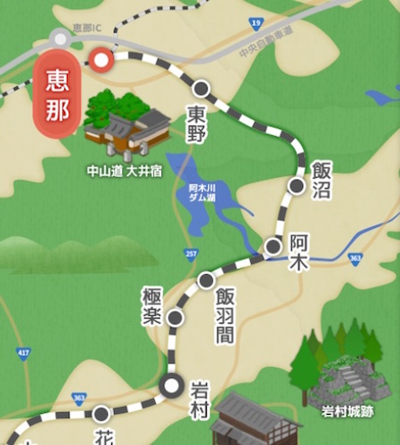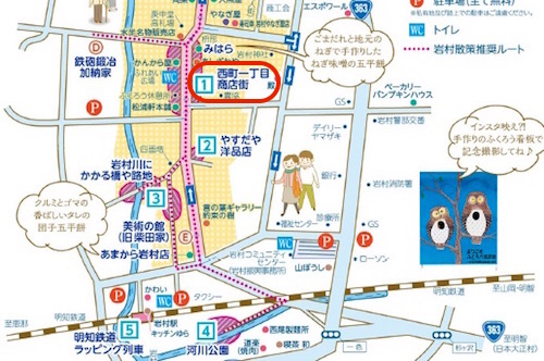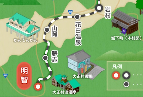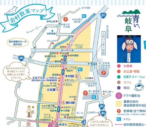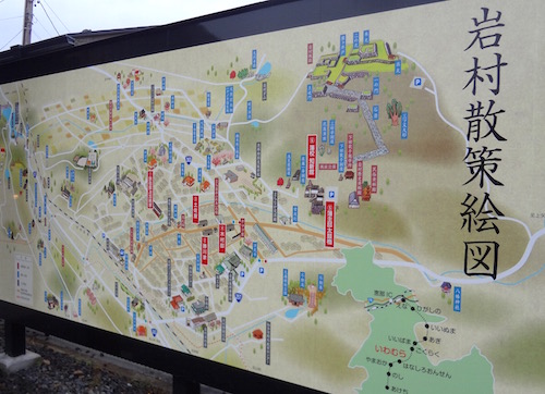 駅には岩村散策絵図があり観光スポットが描かれている。