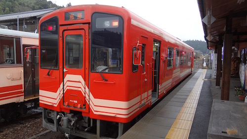 列車が入線してきた。恵那から乗ってきた時と違って、この列車は空いている。