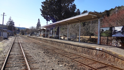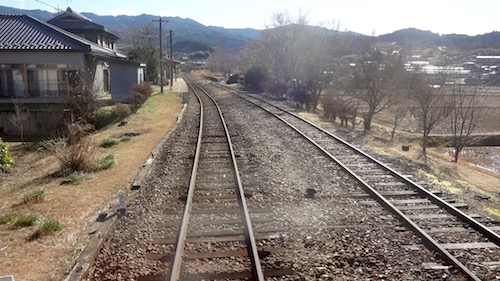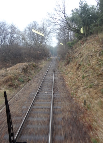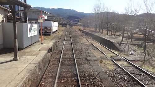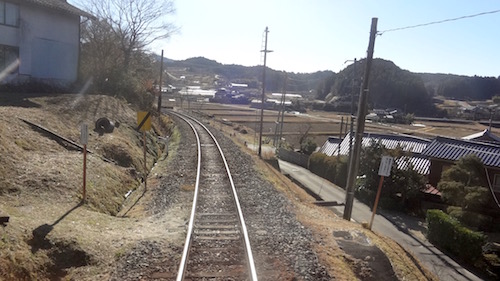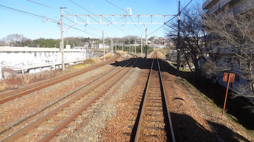この駅は昔は交換設備があったようだ。ここで列車交換すれば混雑時には列車本数をもう少し増やすことができそうだ。でも需要がないのかな?(最後尾から撮影)