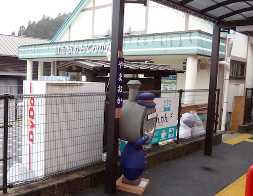 山岡駅舎にはかんてんかんがある。この地域では寒天が名産らしい。