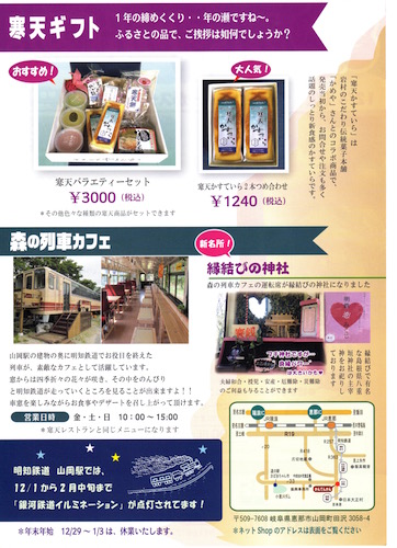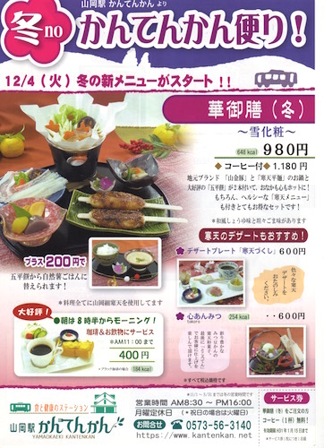 かんてんかん便りもある。12月4日から冬の新メニューの華御膳(冬)〜雪化粧〜がスタートしたようだ。