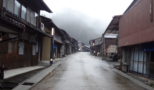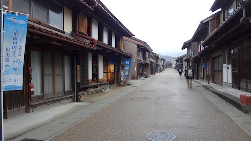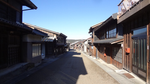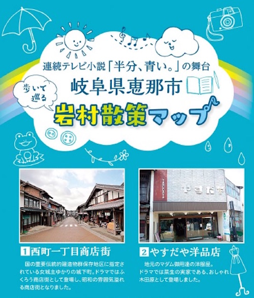 ここ岩村はNHKの連続テレビ小説「半分、青い」の舞台になった。西町一丁目商店街の入口にやすだや洋品店がある。