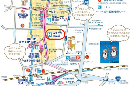 「おしゃれ木田原」になったやすだや洋品店の前を通って岩村駅へ向かう。